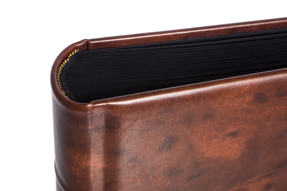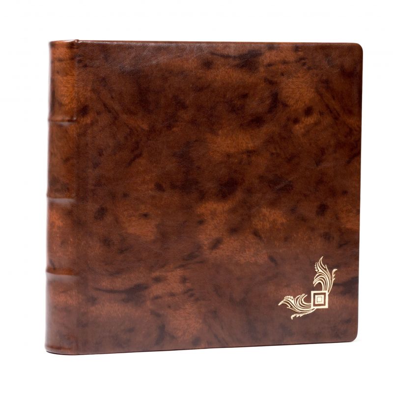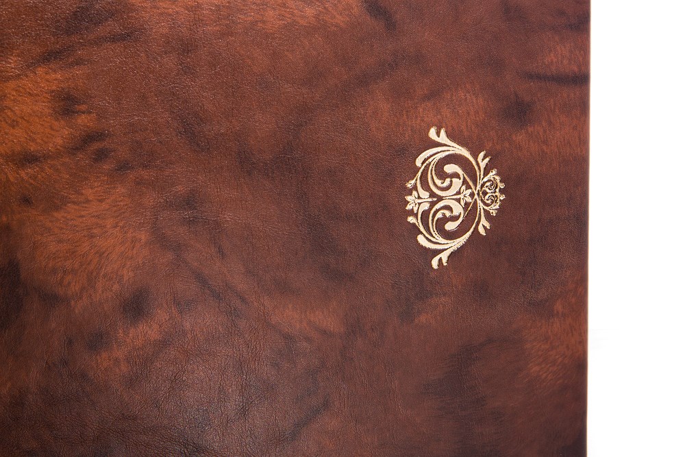 Ten piekny album  zawdzięcza swój jakże elegancki wygląd mistrzom introligatorstwa. Zawarty w nim jest tradycyjny styl i elegancja co sprawia, że nie da się oderwać od niego wzroku. Dodatkowego prestiżu dodaje mu okładka ze skóry mielonej  w kolorze cieniowanego brązu z delikatnym pozłacanym tłoczeniem. Fotografie ,które można umieścić na 50 czarnych kartach oddzielonych od siebie  pergaminem nabiorą nowego blasku i zachowają kolory na długie lata. Jako opcje dodatkową możecie Państwo wybrać wyklejanie zdjęć.