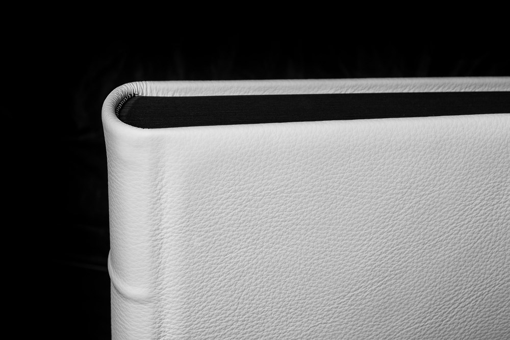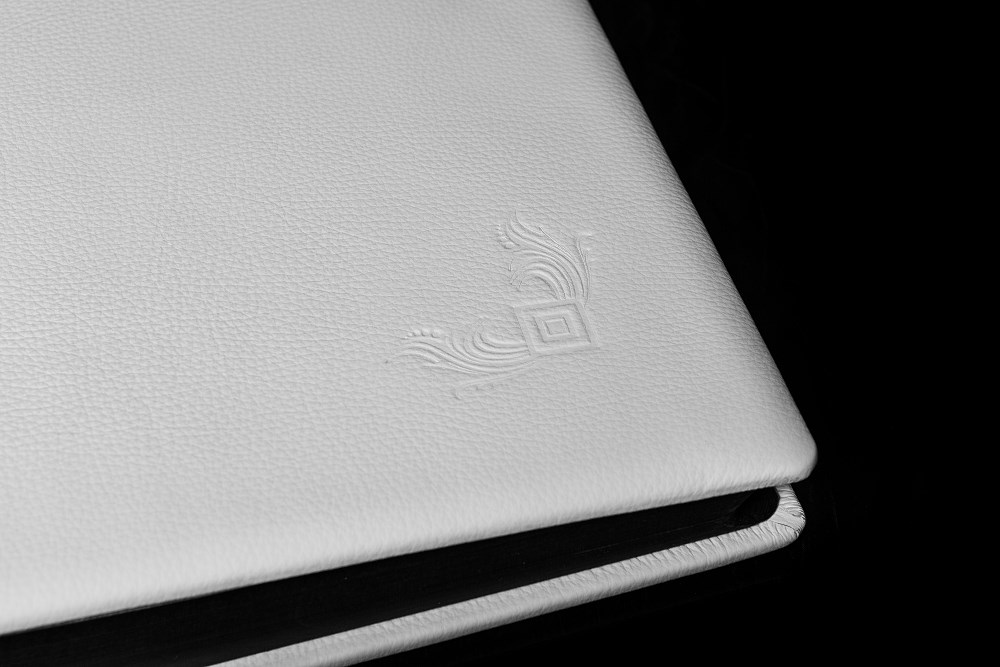 Śnieżnobiała okładka ze skóry naturalnej, 50 eleganckich, czarnych kart oddzielonych od siebie subtelnym pergaminem – tak prezentuje się w dużym skrócie ten album na zdjęcia Exclusive. To idealne miejsce na wyjątkowe fotografie ślubne. Mistrzowie introligatorstwa postawili w tym wypadku na proste, sprawdzone rozwiązania. Na okładce znalazło się zaledwie jedno, niewielkie tłoczenie, które dodaje albumowi prestiżu. Jako opcję dodatkową mogą Państwo wybrać wyklejanie zdjęć. Producent przekonany o doskonałości albumu objął go aż 10-letnią gwarancją.