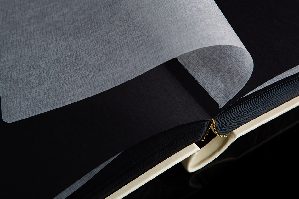 Ten piekny album  zawdzięcza swój jakże elegancki wygląd mistrzom introligatorstwa. Zawarty w nim jest tradycyjny styl i elegancja a ekskluzywne złocone tłoczenie sprawiają, że nie da się oderwać od niego wzroku. Dodatkowego prestiżu dodaje mu okładka w kolorze ecru. Fotografie ,które można umieścić na 50 czarnych kartach oddzielonych od siebie  pergaminem nabiorą nowego blasku i zachowają kolory na długie lata. Jako opcje dodatkową możecie Państwo wybrać wyklejanie zdjęć.