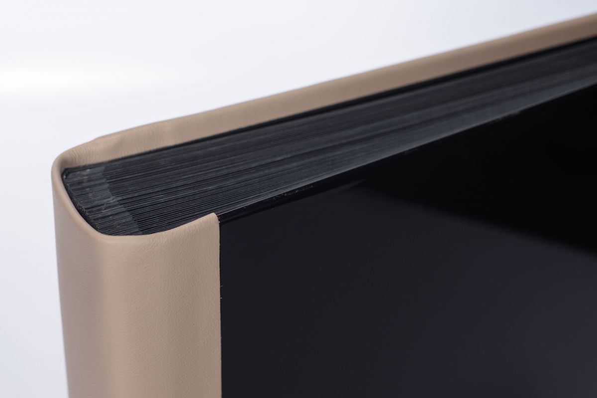 Album wykonany przez włoskich introligatorów. Przednią część okładki stanowi czarny, polerowany akryl. Grzbiet oraz tylna część okładki wykonane są z beżowej ekoskóry. Album zawiera 50 kart w kolorze czarnym przekładanych białym pergaminem.